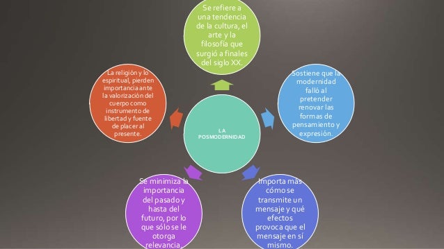 Para la Modernidad el fracaso de la razn fsica deja la va libre para la razn vital e histrica. Entrada más reciente Entrada antigua Inicio. El posmodernismo al romper las barreras entre las formas de arte elitistas y el entretenimiento.